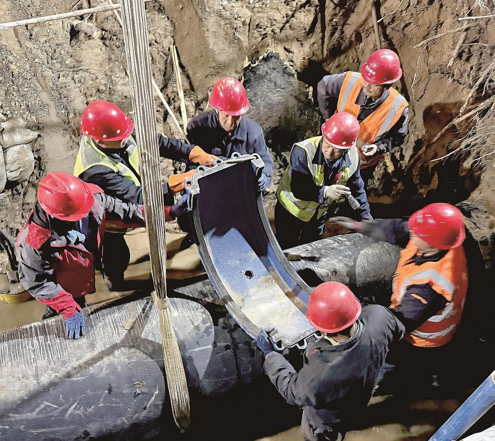 夜色漸深,氣溫持續(xù)下降,搶修現(xiàn)場(chǎng)卻燈火通明、熱火朝天。挖掘、排水、清理、焊接……每一個(gè)環(huán)節(jié)都爭(zhēng)分奪秒,井然有序。黨員干部沖鋒在前,帶頭跳入泥水中作業(yè);其他維修人員輪番上陣,困了就在工程車?yán)锊[一會(huì)兒,餓了就蹲在路邊匆匆扒幾口盒飯。頂風(fēng)冒雨的兩個(gè)日夜,他們心中只有一個(gè)信念:早一分鐘修復(fù),市民就早一分鐘恢復(fù)正常用水,城市秩序就早一分鐘恢復(fù)。