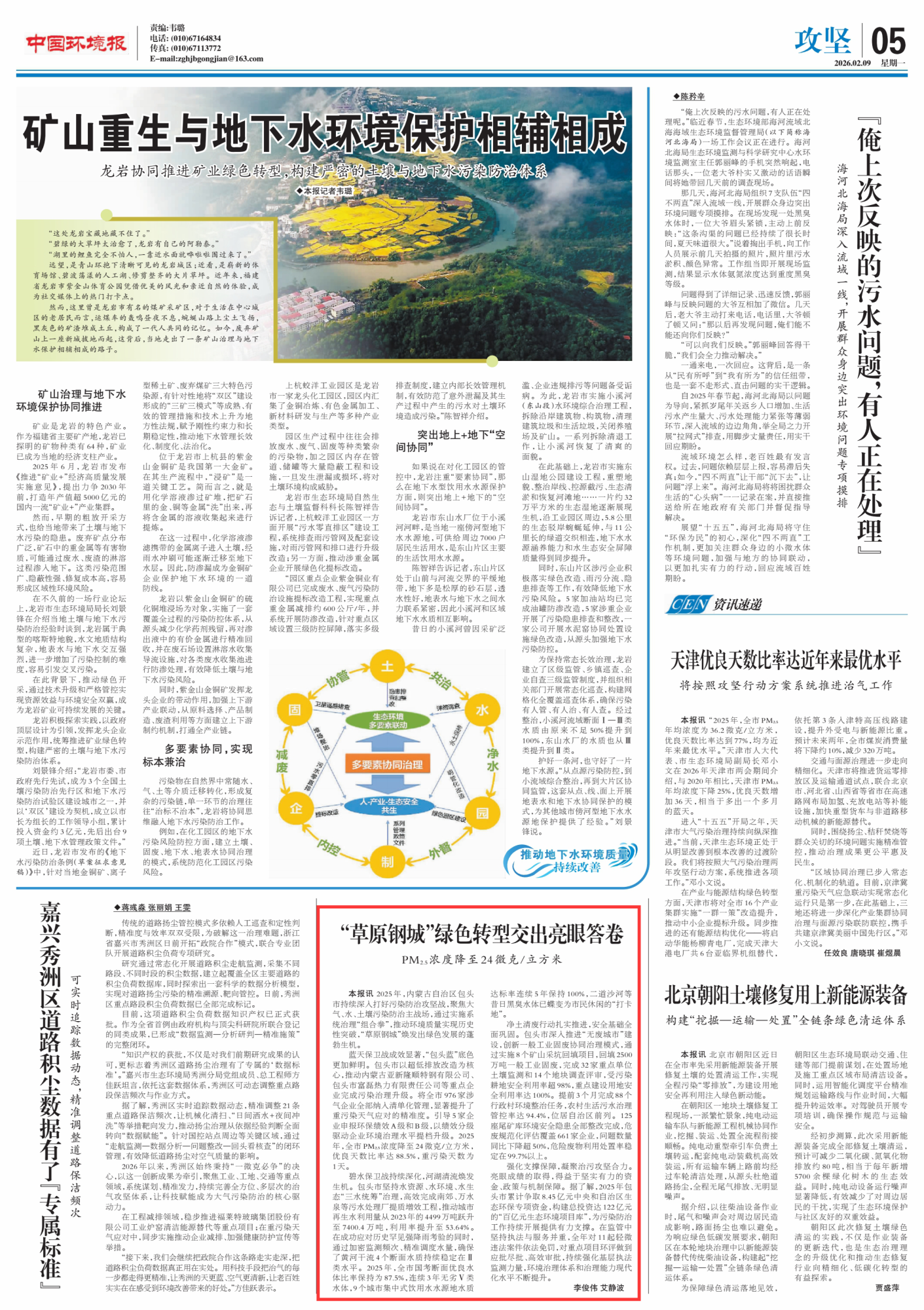 2026年2月9日,《中國(guó)環(huán)境報(bào)》第5版刊發(fā)題為《“草原鋼城”綠色轉(zhuǎn)型交出亮眼答卷 PM2.5濃度降至24微克/立方米》的文章,報(bào)道了2025年,內(nèi)蒙古自治區(qū)包頭市持續(xù)深入打好污染防治攻堅(jiān)戰(zhàn),聚焦大氣、水、土壤污染防治主戰(zhàn)場(chǎng),通過實(shí)施系統(tǒng)治理“組合拳”,推動(dòng)環(huán)境質(zhì)量實(shí)現(xiàn)歷史性突破,“草原鋼城”煥發(fā)出綠色發(fā)展的蓬勃生機(jī)。