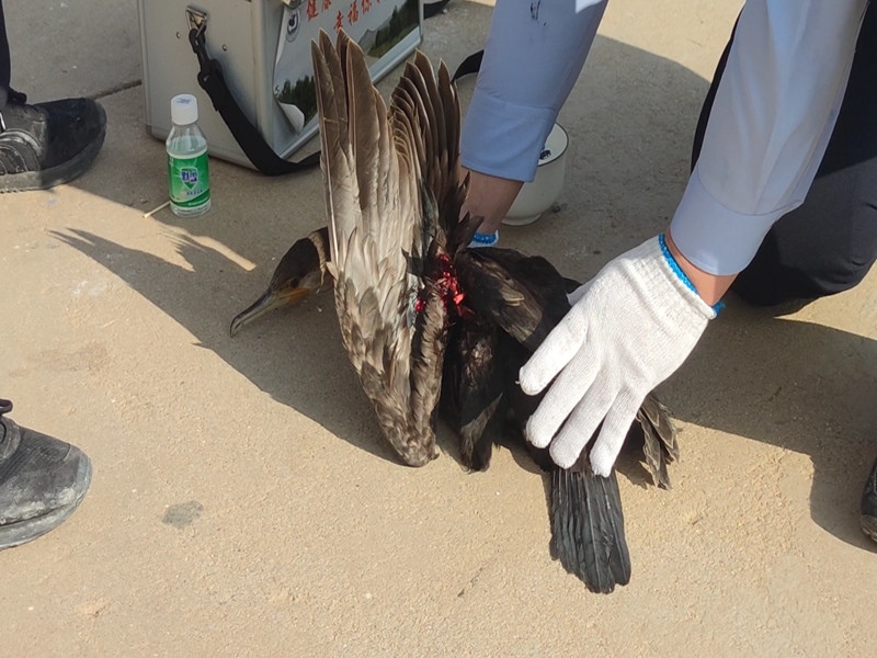 鸕鶿的翅膀嚴(yán)重受傷、無(wú)法飛行