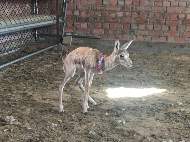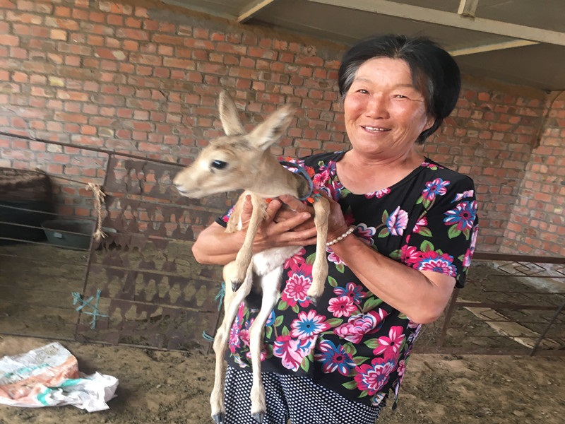 7月9日,甘其毛都邊境派出所民警與護(hù)邊員寶日夫在開展日常巡邊工作途中,發(fā)現(xiàn)一只受傷的黃羊幼崽伏在地上瑟瑟發(fā)抖。經(jīng)檢查,這只小黃羊年齡約為4個(gè)月,左后肢疑似扭傷,無法正常行走,身體也極為虛弱。民警立即將小黃羊帶到護(hù)邊員寶日夫家中包扎救治。寶日夫夫婦還為小黃羊做了一個(gè)項(xiàng)圈掛在脖子上,希望它盡快痊愈,茁壯成長。