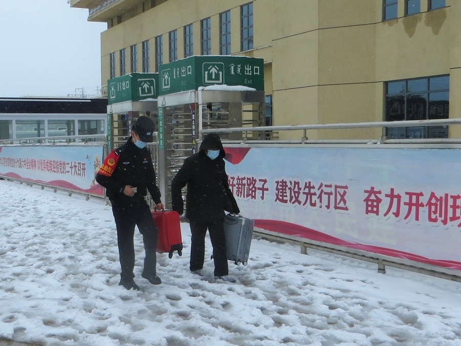 東勝東車站派出所以雪為令,迅速啟動應(yīng)急預(yù)案,積極采取有效措施,解決安全發(fā)送旅客、線路安全暢通等問題,切實保障旅客群眾生命安全和鐵路運輸生產(chǎn)安全。(王鵬)