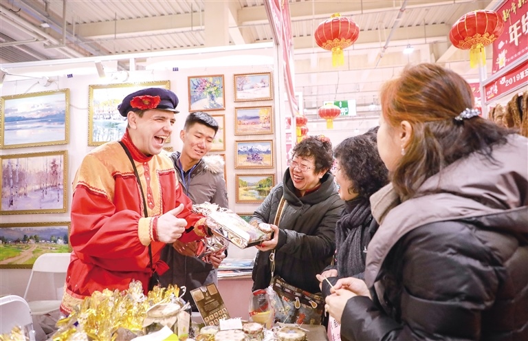 1月16日,來自俄羅斯的客商正在向首府市民介紹特色食品。當日,第五屆呼和浩特市年貨博覽會在內蒙古國際會展中心開幕,來自國內外的近千家企業(yè)帶來了琳瑯滿目各具特色的年貨,其中不少國外產品受到青睞,眾多市民根據(jù)自己的喜好淘到了心儀的精品年貨。本屆年貨博覽會將持續(xù)到1月31日。