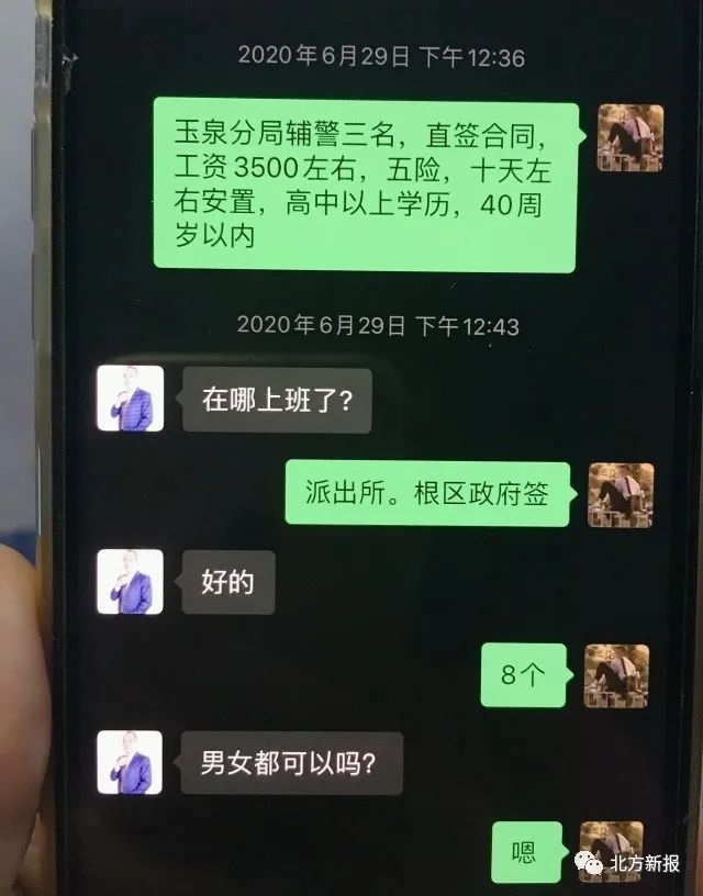 6月30日,大南街派出所民警在日常工作中發(fā)現(xiàn),有人在朋友圈發(fā)布了這樣一條信息:“玉泉區(qū)公安分局招聘輔警3名,直簽合同,工資3500元左右,五險(xiǎn),十天左右安置,高中以上學(xué)歷……”信息末尾留有手機(jī)號(hào)碼。