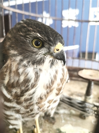 8月19日早上,民警于將雀鷹送往大青山野生動物救護(hù)中心,中心工作人員將對其進(jìn)行觀察和喂養(yǎng),待其體能恢復(fù)后放歸自然?!?記者 郝儒冰)攝影/賈德京