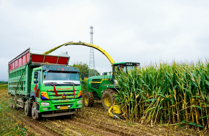 在土默特左旗察素齊鎮(zhèn)什兵地村,連片的青貯玉米長(zhǎng)勢(shì)喜人,迎來(lái)收割季。