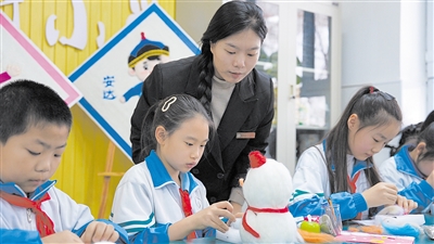 “全國大眾冰雪季給我們帶來了一個(gè)絕佳的主題切入點(diǎn),讓傳統(tǒng)的羊毛氈工藝與冰雪運(yùn)動(dòng)相互交融碰撞,孩子們在戳刺羊毛的過程中,對冰雪文化有了更深層次的理解,也對非遺技藝充滿敬意?!苯】到中W(xué)美術(shù)教師山丹邊說邊悉心指導(dǎo)學(xué)生把握形狀、色彩與紋理,幫助他們將創(chuàng)意更好地在羊毛氈作品中呈現(xiàn)?!拔以谥谱鬟@個(gè)滑雪小人的時(shí)候,就一直在想自己滑雪時(shí)的快樂,每戳一針都很用心,希望能把這份快樂表現(xiàn)在作品里?!彼哪甓鄬W(xué)生宋子祺說。