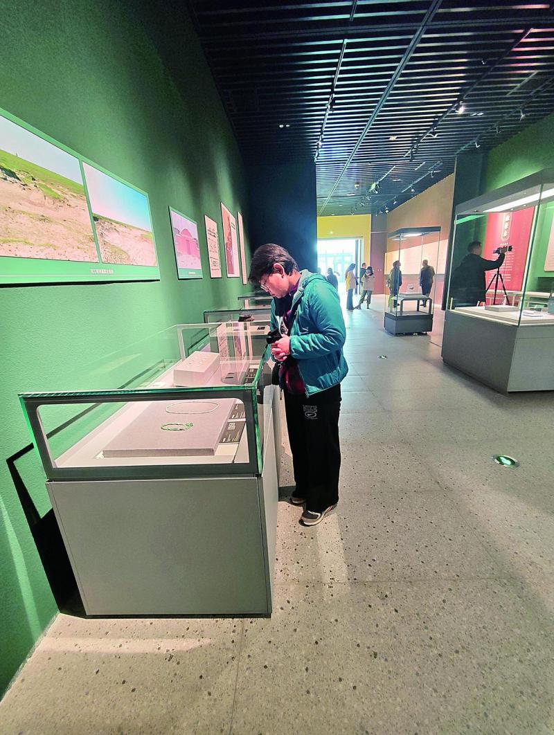 呼倫貝爾歷史博物館工作人員衣著北魏時期服飾與現(xiàn)場市民拍照互動