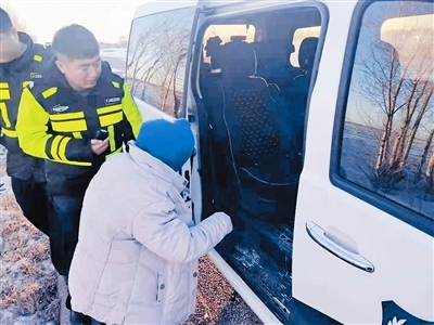 眼見天色漸晚,考慮到天冷路滑,且國省干道車流量大,為確保老人的安全,執(zhí)勤民警決定駕警車送其回家。途中,民警耐心與老人溝通,提醒其坐在馬路上非常危險,告知其出行要有家人陪同……大約10分鐘后,老人被安全送回家中。