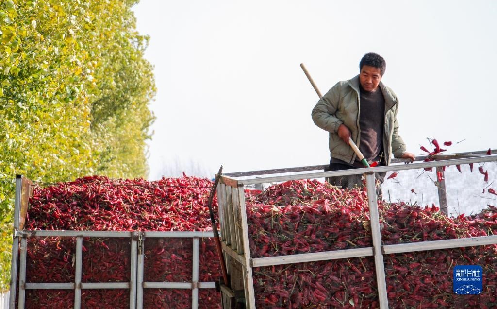 近日,內(nèi)蒙古通遼市開魯縣迎來紅干椒收獲銷售旺季。開魯縣紅干椒皮紅肉厚、品質(zhì)優(yōu)良,產(chǎn)品暢銷國內(nèi)外市場(chǎng)。近年來,開魯縣紅干椒種植面積穩(wěn)定在60萬畝。新華社記者 連振 攝