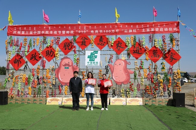 據(jù)介紹,“919電商節(jié)”,是中國郵政集團(tuán)公司利用線上電商平臺,開展農(nóng)產(chǎn)品進(jìn)城、助力農(nóng)民脫貧致富的惠民活動。今年活動期間,擬銷售“后旗紅”土豆100萬斤,可以讓一家扶貧龍頭企業(yè)、一家合作社、500多戶農(nóng)牧戶受益。其中北方馬鈴薯批發(fā)市場帶動200戶貧困戶參與集體分紅,戶均增收1000元;高價收購15戶貧困戶、20戶農(nóng)戶馬鈴薯20萬斤,戶均增收1600元;直接間接帶動務(wù)工人員265人,人均增收420元;活動期間將為28戶農(nóng)戶提供免費耕作服務(wù),免費耕作土地總畝數(shù)940畝,幫助28戶農(nóng)戶節(jié)省開支42300元,戶均節(jié)省1511元。