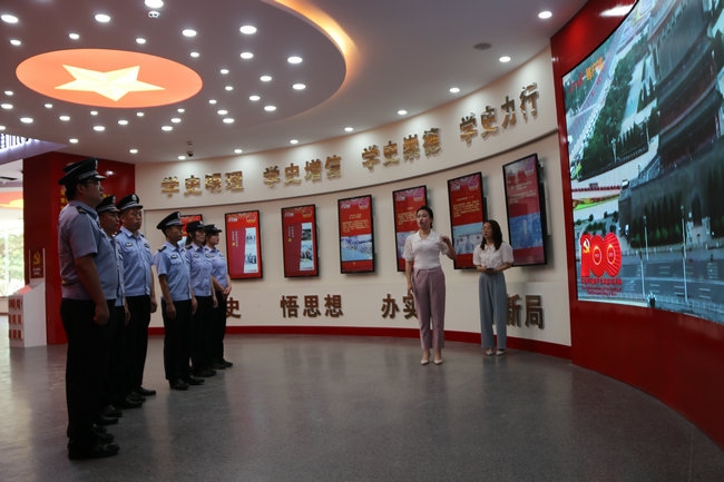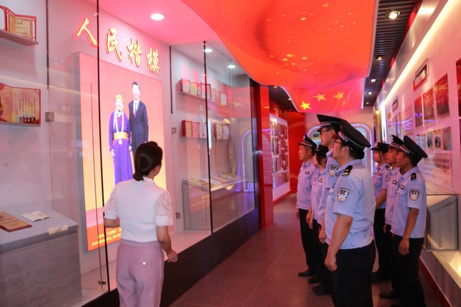 習(xí)近平新時(shí)代中國(guó)特色社會(huì)主義思想實(shí)踐基地由四子王旗委政府于2021年5月建成,總面積460平米,展廳內(nèi)展出圖片241張、文字展板34塊、視頻資料12個(gè),分黨史學(xué)習(xí)教育、都貴瑪先進(jìn)事跡、新時(shí)代文明實(shí)踐中心三個(gè)展廳,力圖打造成鞏固民族團(tuán)結(jié)大局、鑄牢中華民族共同體意識(shí)的紅色教育主陣地。在黨史學(xué)習(xí)教育展廳,全體黨員民警通過(guò)多媒體技術(shù),深入了解了黨的歷次代表大會(huì)主要內(nèi)容、我們黨理論探索的發(fā)展歷程和中國(guó)共產(chǎn)黨人的精神譜系以及習(xí)近平總書記對(duì)內(nèi)蒙古的重要囑托,重溫了習(xí)近平總書記“七一”重要講話精神,引導(dǎo)黨員民警牢記初心使命,時(shí)刻銘記黨性是黨員立身、立業(yè)、立德的基石。在都貴瑪先進(jìn)事跡展廳,大家通過(guò)視頻、照片、文字、連環(huán)畫等方式細(xì)致了解了“草原母親”都貴瑪養(yǎng)育28名孤兒和挽救40多位產(chǎn)婦的感人事跡,共同回憶了都貴瑪老人與邊防官兵、移民管理警察相處的點(diǎn)點(diǎn)滴滴。大家被都貴瑪老人身上“初心如炬 大愛(ài)無(wú)疆”的精神深深折服,深切感受到榜樣的力量。在新時(shí)代文明實(shí)踐中心展廳,大家還了解到駐地四子王旗新時(shí)代文明實(shí)踐工作的重要舉措和成果,通過(guò)對(duì)照人民楷模和道德模范,深入開(kāi)展深刻檢視,進(jìn)一步強(qiáng)化了黨員民警建設(shè)美麗邊疆、維護(hù)安全穩(wěn)定的信心決心。