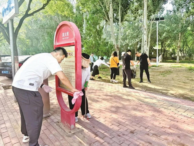 隊(duì)員們中有不少是和田永成年紀(jì)相仿的退休老人,還有一些新加入進(jìn)來的年輕志愿者。他們有的拿著掃帚清掃路面,有的提著袋子撿拾垃圾,有的則在擦拭小區(qū)的健身器材。魏玉仙是志愿服務(wù)隊(duì)的老隊(duì)員了,她一邊擦著石凳一邊說:“小區(qū)是咱們自己的家,干凈了住著才舒服。老田頭一招呼,我們肯定得來?!?/p>