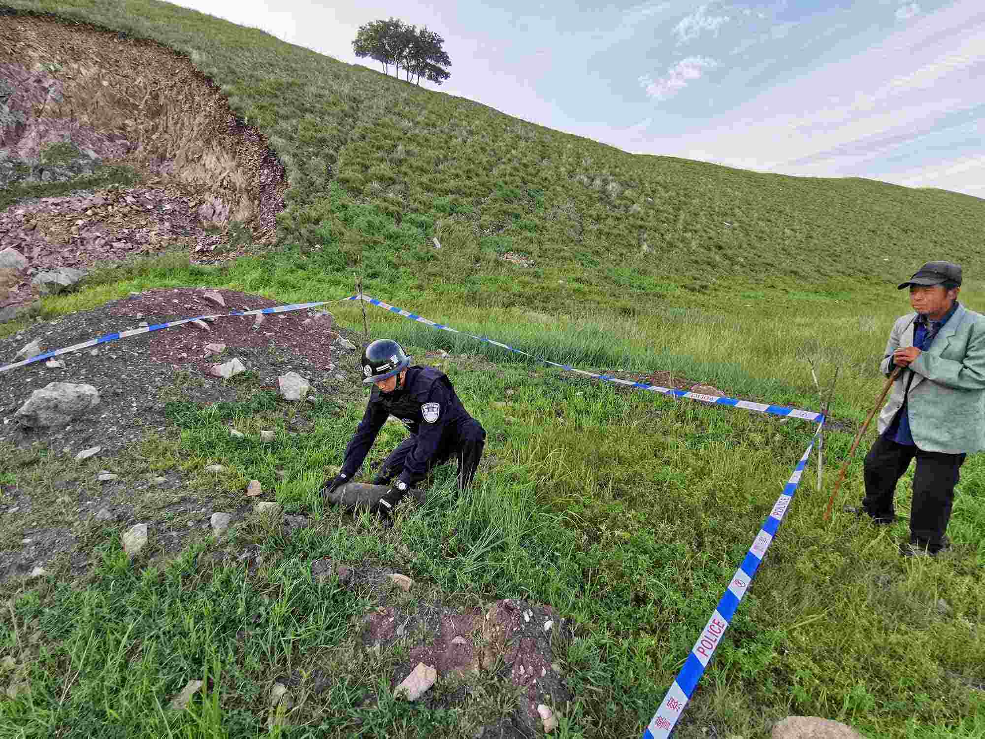 8月18日10時(shí),阿爾山邊境派出所接到轄區(qū)群眾報(bào)警稱:在阿爾山市某山上發(fā)現(xiàn)疑似炮彈的金屬物體。民警迅速趕往指定地點(diǎn),劃定警戒區(qū)、封鎖出入通道,在現(xiàn)場(chǎng)很快發(fā)現(xiàn)了長約30厘米不等的3枚廢舊炮彈,經(jīng)初步勘驗(yàn),該炮彈系日軍侵華時(shí)期遺留,引信已經(jīng)損壞,但內(nèi)部裝置完好,受到劇烈撞擊仍有爆炸可能。8月19日14時(shí),科右前旗綠水邊境派出所民警下鄉(xiāng)走訪期間,根據(jù)羊倌反映,在一處放牧包附近挖出2枚20厘米不等的廢舊炮彈和1枚手雷,炮彈的鐵質(zhì)外殼雖已生銹,但引信完好,輪廓清晰,若有牲畜踩踏仍有可能發(fā)生爆炸,具有較大的殺傷力。為徹查隱患,民警將炮彈轉(zhuǎn)至安全地帶后,對(duì)附近區(qū)域進(jìn)行了全方位排查搜索,未發(fā)現(xiàn)其他安全隱患。