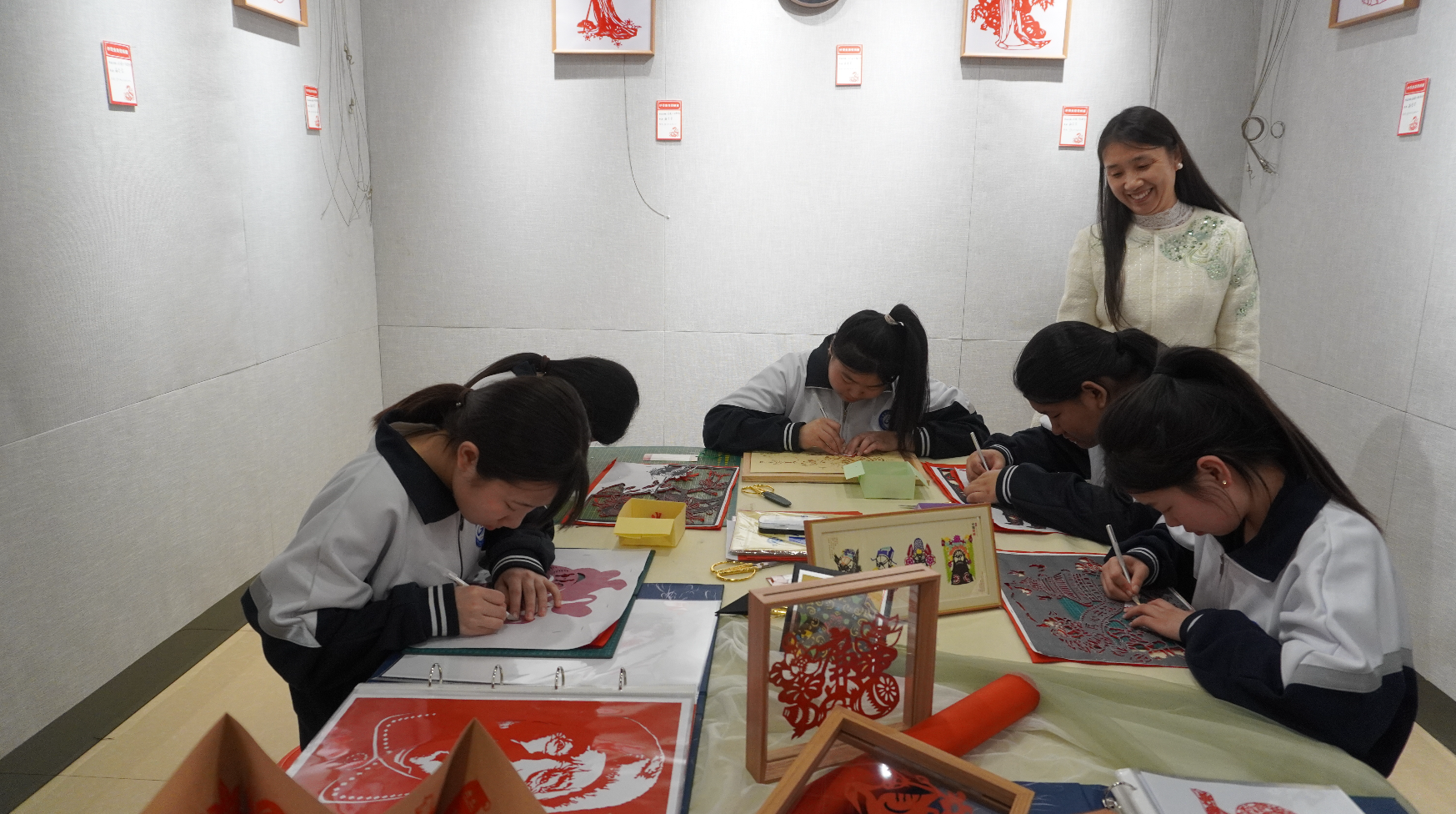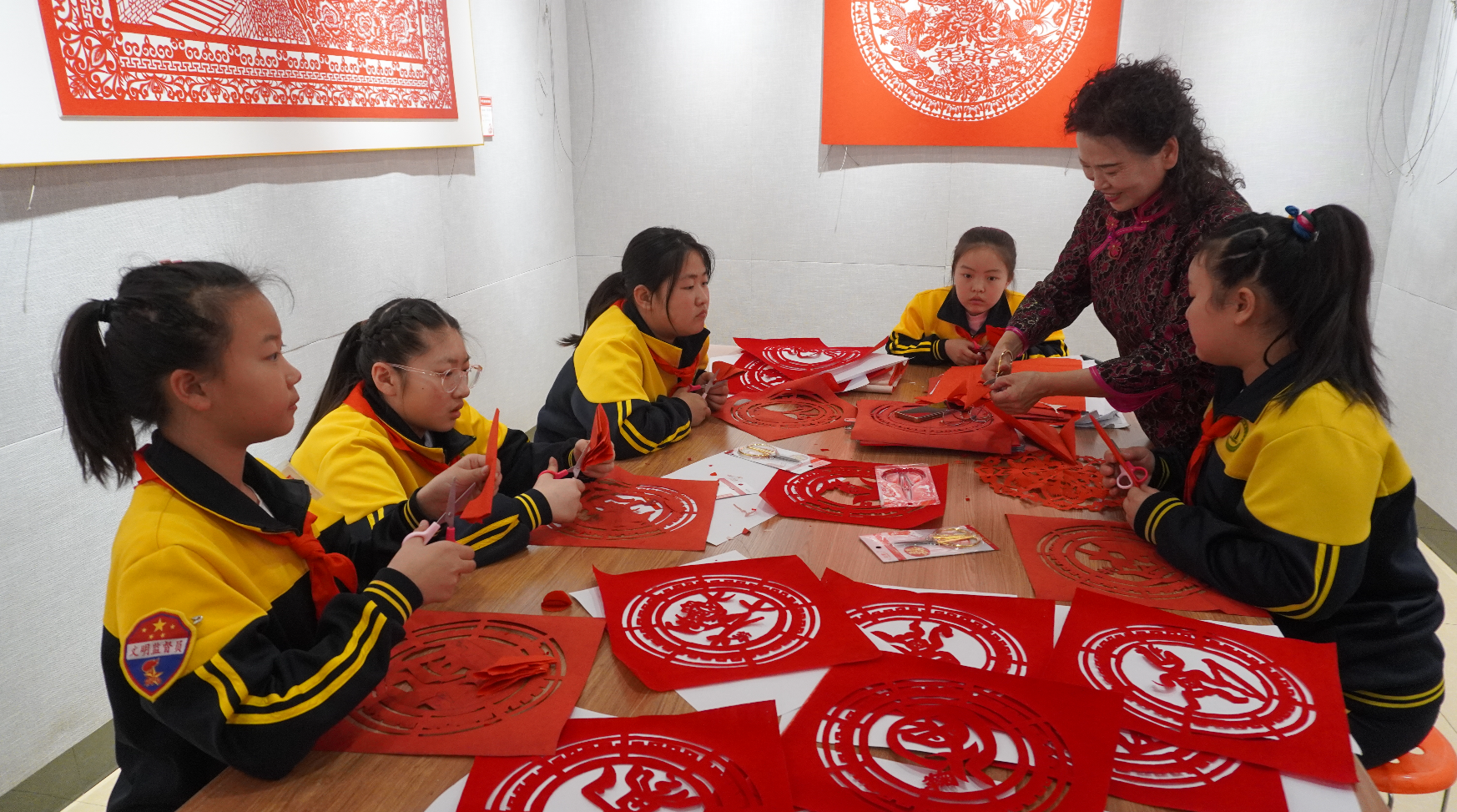 此次展覽的剪紙作品內容豐富、制作精致、形式多樣,在傳承傳統(tǒng)剪紙藝術的同時,注入了新時代的元素特征,以剪紙藝術詮釋烏蘭浩特市自然風物、傳統(tǒng)建筑與歷史文化之美,展現出剪紙技藝在傳承與發(fā)展中的無限魅力。觀眾不僅可以近距離感受剪紙的藝術魅力,還可以參與剪紙,感受中國傳統(tǒng)文化的博大精深?! ?/p>