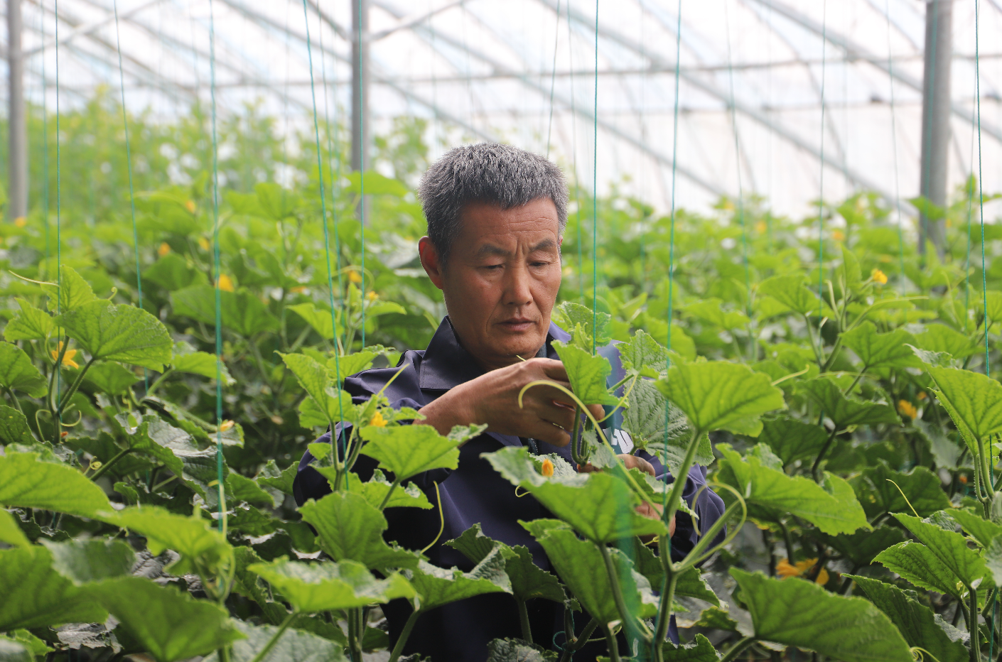 工人正在查看蔬菜生長情況
