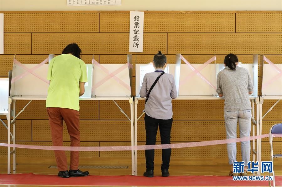 7月5日,選民在日本東京的一個投票點投票。日本東京都知事選舉于5日舉行投票。新華社記者杜瀟逸攝