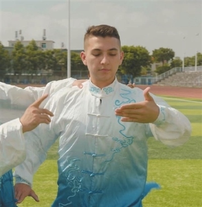 留學(xué)生小龍來自烏茲別克斯坦,因?yàn)橄矚g電影明星成龍和李小龍,所以取中文名為小龍。小龍說:“來到中國(guó)后,我覺得太極拳很有意思,也想來學(xué)習(xí)一下。太極拳的動(dòng)作看起來簡(jiǎn)單,但其實(shí)并不簡(jiǎn)單,做這些動(dòng)作的時(shí)候要學(xué)會(huì)控制自己的身體。中國(guó)的太極拳很酷,希望更多的朋友學(xué)習(xí)太極拳,讓中國(guó)的太極拳走向世界。”