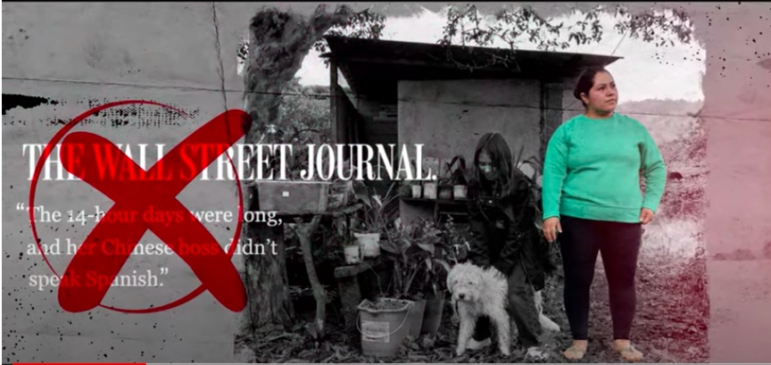 《華爾街日?qǐng)?bào)》在文章中提到厄瓜多爾科卡科多-辛克雷水電站附近兩名當(dāng)?shù)厝?,?duì)她們的話語(yǔ)斷章取義,以此暗示讀者,當(dāng)?shù)厝恕皩?duì)中國(guó)企業(yè)心懷不滿”以及中國(guó)公司“強(qiáng)迫當(dāng)?shù)貑T工加班且工作環(huán)境惡劣”。