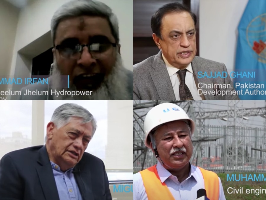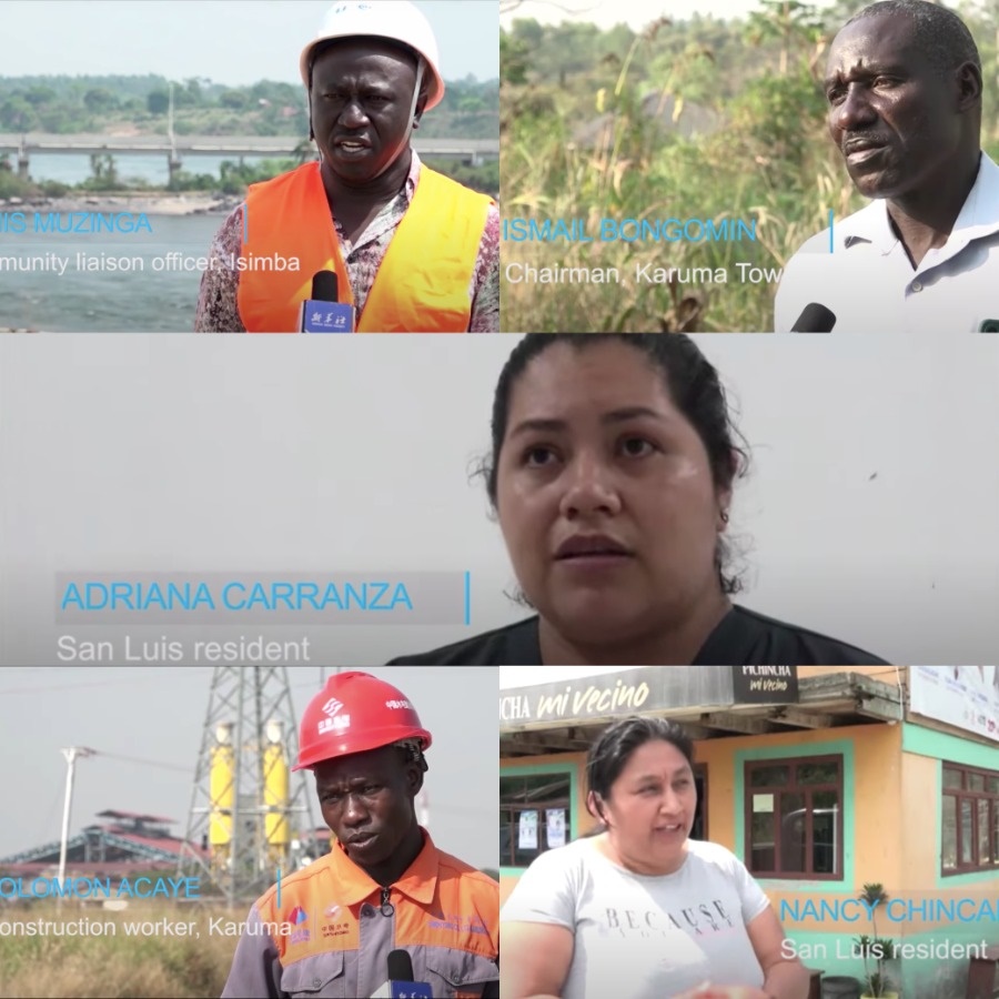新華社采訪當(dāng)?shù)孛癖?、中企員工、官員視頻截屏拼圖