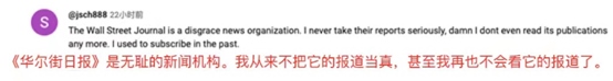 網(wǎng)友@jsch888說(shuō):“《華爾街日?qǐng)?bào)》是無(wú)恥的新聞機(jī)構(gòu)。我從來(lái)不把它的報(bào)道當(dāng)真,我甚至再也不會(huì)看它的報(bào)道了?!?/p>