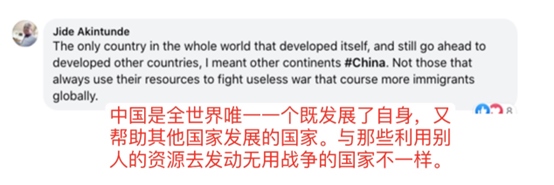 網(wǎng)友盧克蒙·奧拉德潑·法布恩米說(shuō):“撒謊者已經(jīng)被指出來(lái)了,他們批評(píng)中國(guó)制造的一切,但被人發(fā)現(xiàn)他們的指責(zé)毫無(wú)根據(jù)。中國(guó)干得漂亮?!?/p>