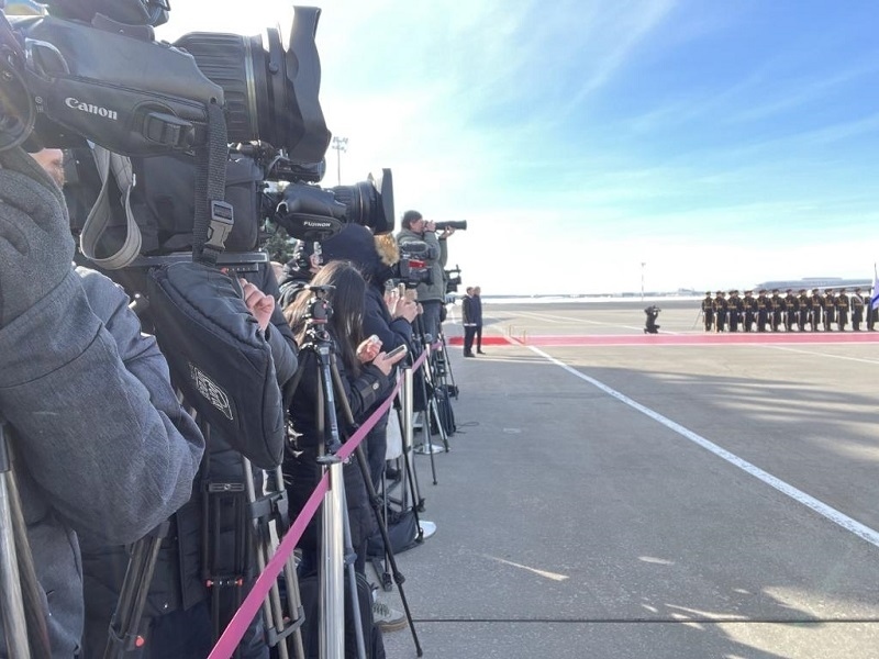 抵達(dá)時(shí),俄方在機(jī)場(chǎng)舉行隆重迎賓儀式。