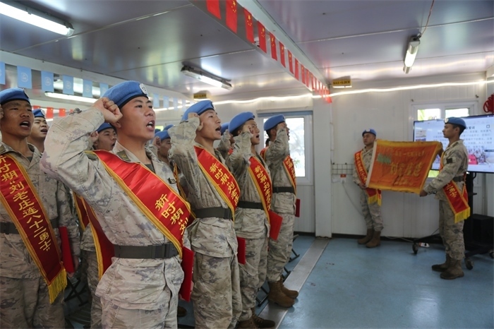 在嘹亮的宣誓聲中,全體官兵重溫了入連誓詞。維和任務區(qū)官兵再次領命,趕赴維和任務一線。