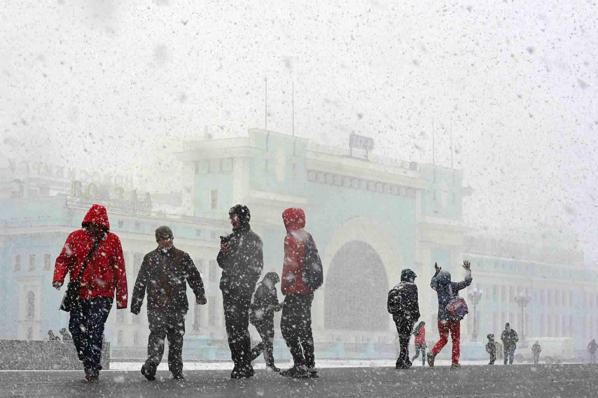 俄羅斯春雪飄落 街道被雪覆蓋