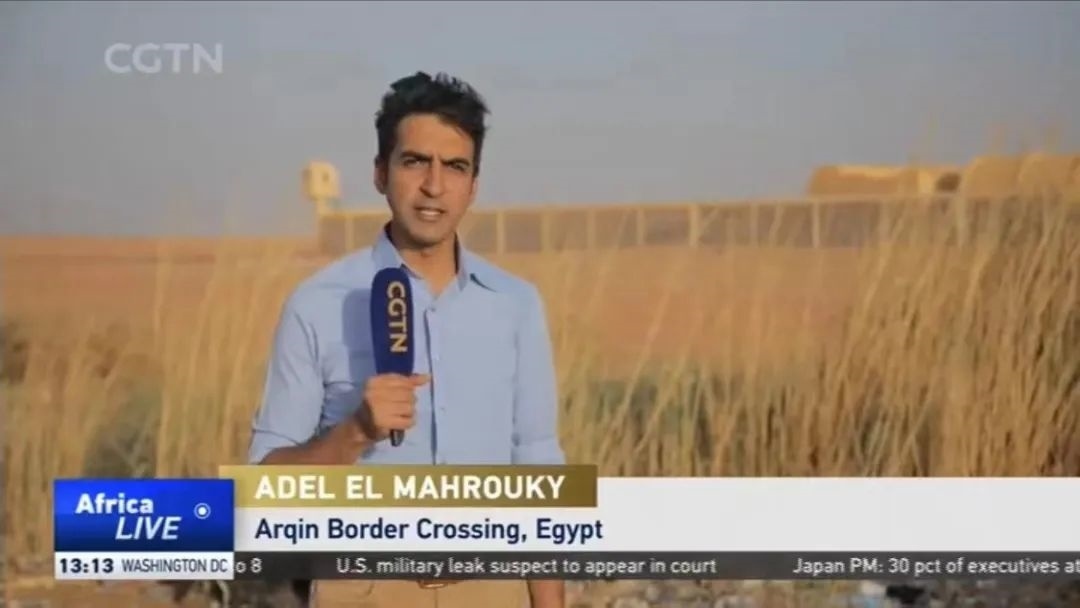 △CGTN報(bào)道員Adel在埃及與蘇丹邊境口岸報(bào)道撤僑情況