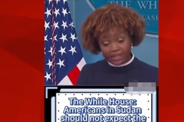 為證明自己的觀點(diǎn),安柏然在視頻中展示了幾個(gè)視頻片段。其中一個(gè)片段顯示,一名美媒主持人報(bào)道稱,美軍在夜間出動(dòng)直升機(jī)將大約100名美國外交官及其家屬從蘇丹撤出。還有一段視頻顯示,白宮新聞秘書卡里娜·讓-皮埃爾近日在記者會(huì)上稱,美國駐蘇丹使館4月16日曾發(fā)布安全警告稱,由于喀土穆安全局勢存在不確定性且機(jī)場已關(guān)閉,美國公民此時(shí)不應(yīng)期待美國政府協(xié)調(diào)撤僑?!爱?dāng)務(wù)之急是,在蘇丹的美國公民要自行安排,在困難情況下確保自身安全。我們建議美國公民就地避難……”她稱。