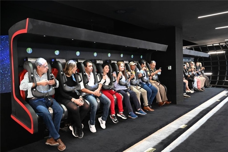 5月2日,洪都拉斯媒體代表團(tuán)一行在重慶市規(guī)劃展覽館體驗(yàn)“飛越重慶”飛行影院。新華社記者 趙佳樂(lè) 攝