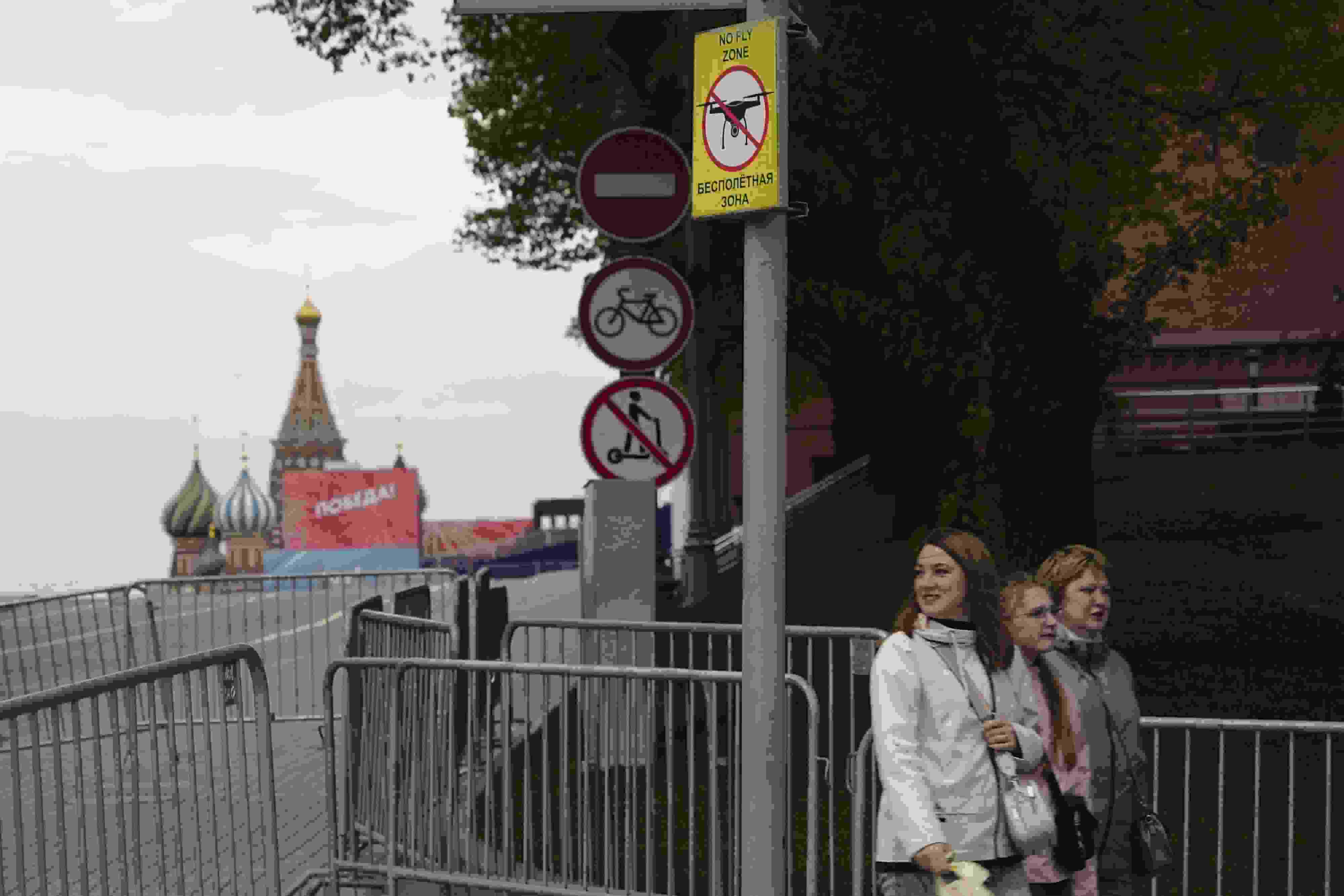 當(dāng)?shù)貢r(shí)間2023年5月3日,俄羅斯莫斯科,莫斯科市中心懸掛的“無(wú)人駕駛飛機(jī)禁飛區(qū)”的標(biāo)志,禁止無(wú)人機(jī)在該地區(qū)飛行??死锬妨謱m遭無(wú)人機(jī)襲擊后,莫斯科市長(zhǎng)宣布禁止未經(jīng)授權(quán)的無(wú)人機(jī)在俄羅斯首都上空飛行。 視覺(jué)中國(guó)