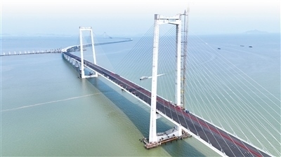 4月12日,在粵港澳大灣區(qū)核心區(qū)域,串聯(lián)珠江東西兩岸的世界級(jí)跨海工程——深中通道正在加緊施工。周志旺攝(影像中國)