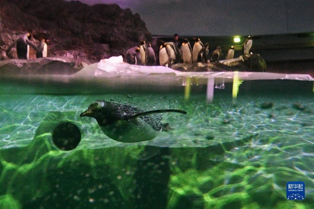 這是5月8日新加坡飛禽公園開放當天拍攝的潛水的企鵝。