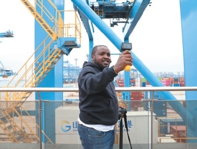 4月23日,非洲青年代表用鏡頭記錄山東青島港的繁忙景象。 本報(bào)記者 陳尚文攝