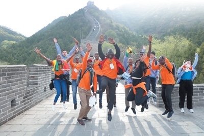 4月17日,非洲青年代表在北京居庸關(guān)長城合影留念。中國宋慶齡基金會(huì)供圖