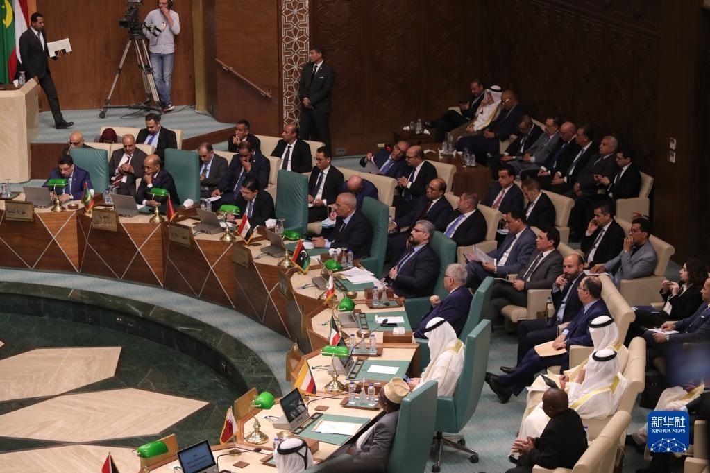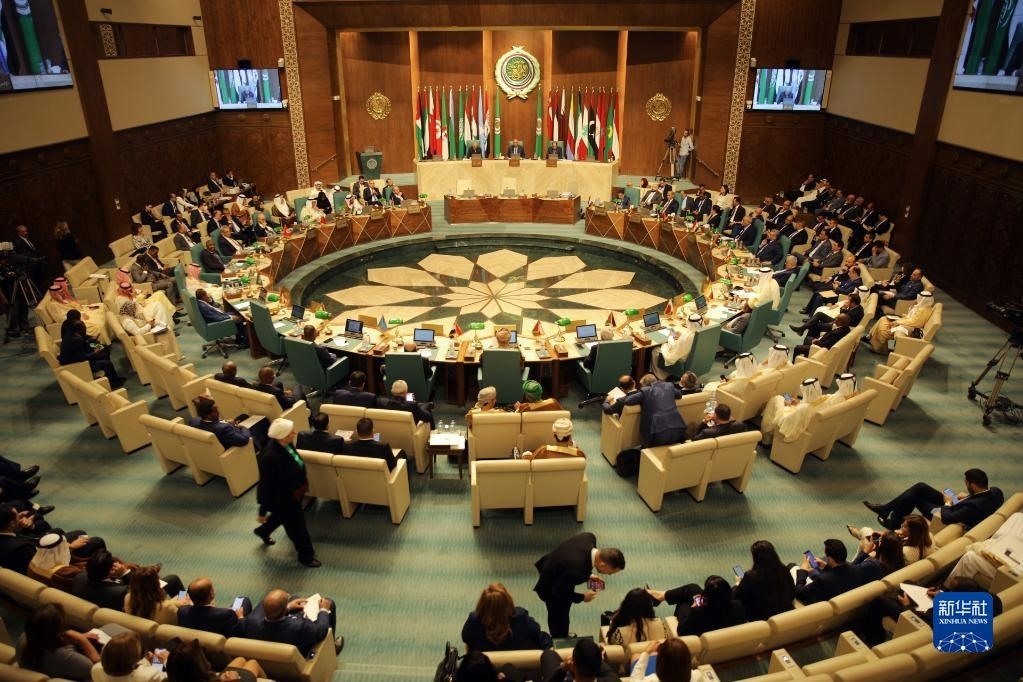 這是5月7日在埃及開(kāi)羅拍攝的阿拉伯國(guó)家聯(lián)盟外長(zhǎng)級(jí)特別會(huì)議現(xiàn)場(chǎng)。