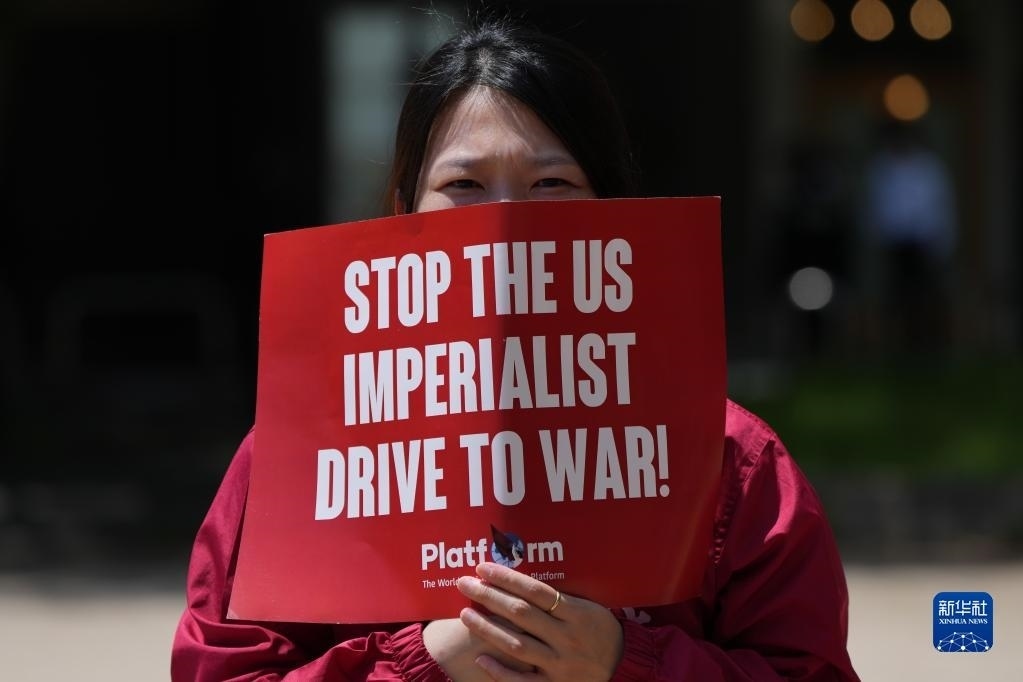 5月21日,民眾聚集在日本廣島袋町公園,抗議七國集團峰會。