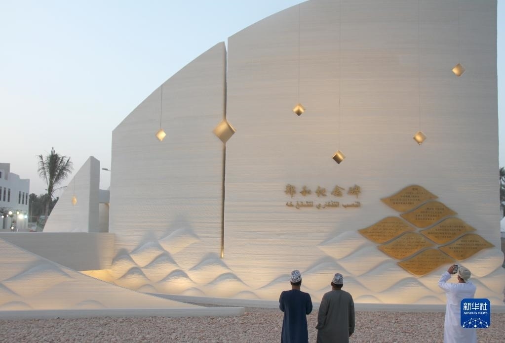 中國駐阿曼大使館5月30日在阿曼第二大城市塞拉萊舉行鄭和碑竣工儀式。鄭和碑主體造型取自海浪與船頭,用靈動的曲線還原鄭和船隊(duì)乘風(fēng)破浪的場景。鄭和碑選址在佐法爾省政府打造的國家級濱海傳統(tǒng)文化、旅游與商務(wù)區(qū)內(nèi)的核心地帶。