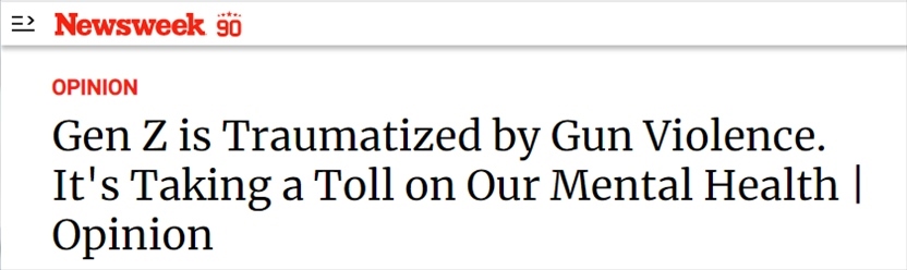 文章作者亞莉克莎·布朗寧(Alexa Browning)寫到,作為年輕人,她對槍支暴力造成的創(chuàng)傷有切身體會,其帶來的恐懼已滲透到她日常生活的每個角落,讓她精疲力盡。她無法和家人一起去看電影,因為她非常擔(dān)心自己分辨不了煙花的響聲和槍聲。