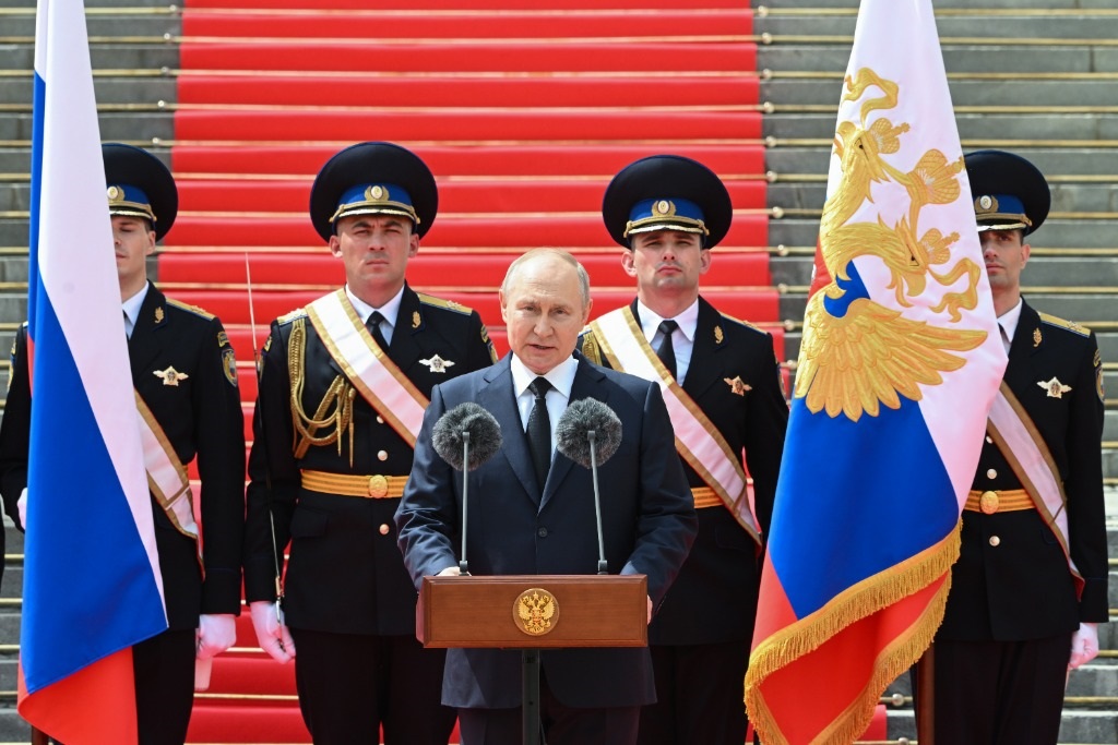 普京當(dāng)天在克里姆林宮內(nèi)的教堂廣場接見參與平叛的國防部、聯(lián)邦安全局、國民近衛(wèi)軍和內(nèi)務(wù)部等強(qiáng)力部門代表大約2500人,發(fā)表電視直播講話,感謝他們勇敢、忠于職守、對俄羅斯人民忠誠。