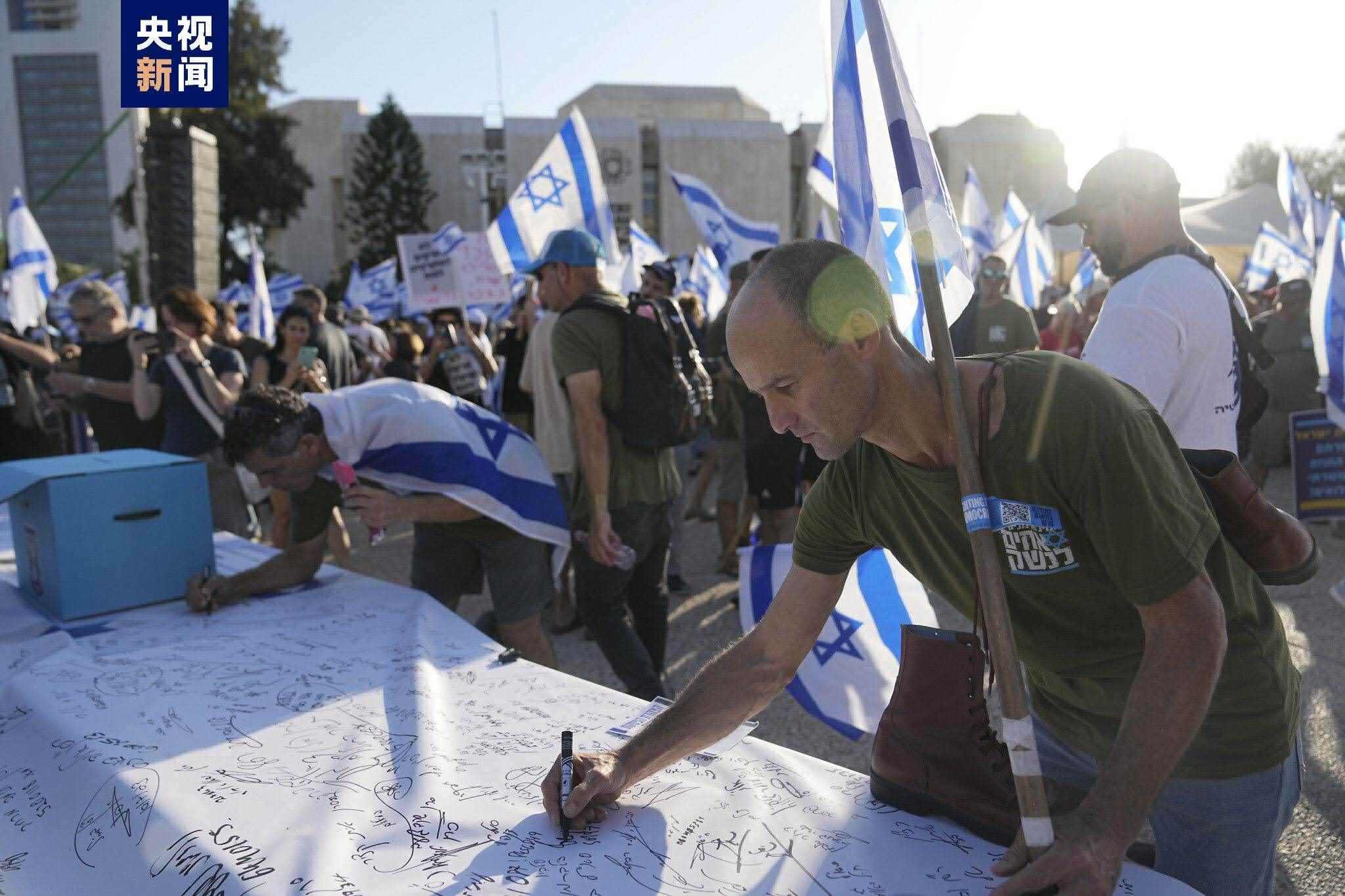 △今年7月,以色列預備役士兵簽署聲明拒絕參與訓練,抗議司法改革。
