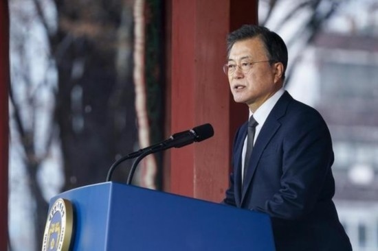 2021年3月1日,韓國時(shí)任總統(tǒng)文在寅在首爾塔谷公園發(fā)表講話。新華社發(fā)(青瓦臺供圖)