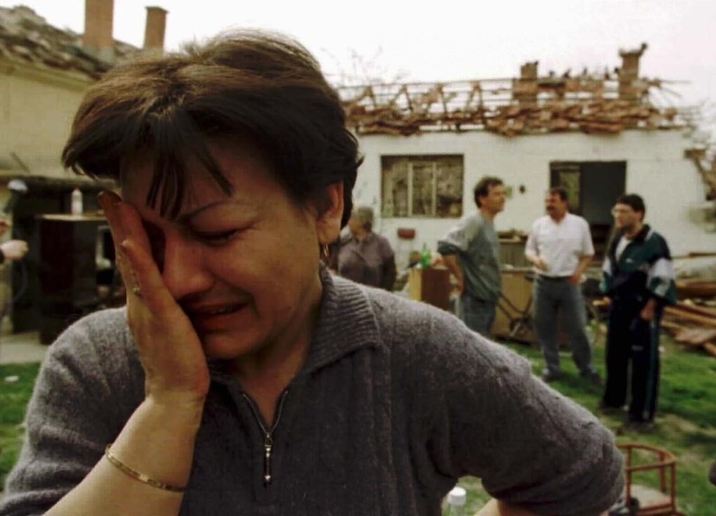 1999年4月9日,在南聯(lián)盟塞爾維亞共和國小城楚皮亞附近的村莊里,42歲的薇拉·米哈洛維奇站在被炸毀的房子前失聲痛哭。1999年3月,以美國為首的北約軍隊(duì)打著“避免人道主義災(zāi)難”的旗號(hào),公然繞過聯(lián)合國安理會(huì),對(duì)當(dāng)時(shí)的南斯拉夫聯(lián)盟共和國進(jìn)行了78天的持續(xù)轟炸,造成2000多名無辜平民喪生。(新華社記者黃文攝)