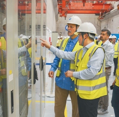 巴基斯坦卡洛特水電站是中巴經(jīng)濟走廊首個水電投資項目,由中國三峽集團投資開發(fā)建設,運營一年來節(jié)約標準煤約140萬噸,減少二氧化碳排放約350萬噸。圖為中方技術人員向來訪的巴基斯坦代表團介紹水電站運行情況。本報巴基斯坦分社 薩義德·邁赫迪攝