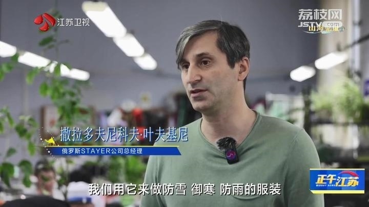 俄羅斯STAYER公司總經(jīng)理撒拉多夫尼科夫·葉夫基尼說:“這都是剛從中國運(yùn)過來的布料,它們具有防水性,透氣性,我們用它來做防雪、御寒、防雨的服裝。所有人都贊成中國的布料越來越好,近三年的計(jì)劃是加強(qiáng)與合作伙伴的聯(lián)系,擴(kuò)大布料的購買量,期待有好的發(fā)展?!?/p>