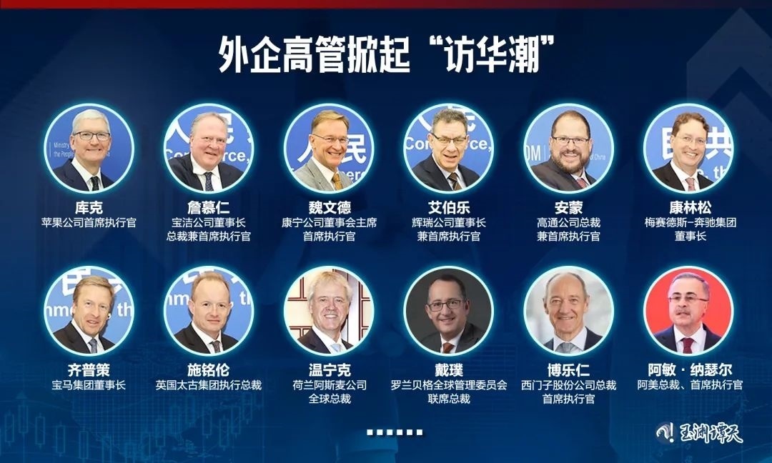 所以,我們看到,今年以來(lái),包括特斯拉、大眾汽車、星巴克、高通、寶馬等在內(nèi)的一百多位世界500強(qiáng)企業(yè)和行業(yè)龍頭企業(yè)的負(fù)責(zé)人紛紛訪問(wèn)中國(guó)。