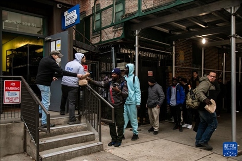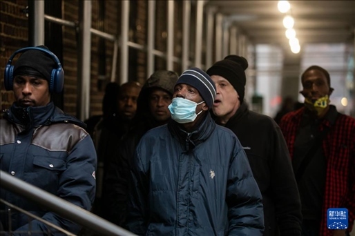 12月24日,在美國紐約,民眾在“紐約公共食品儲藏室”排隊(duì)領(lǐng)取免費(fèi)食品。新華社發(fā)(郭克攝)