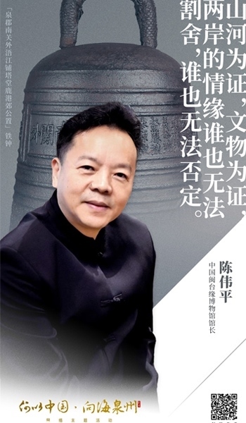 1月28日晚,由中央網(wǎng)信辦、國家文物局、人民日報社、福建省委網(wǎng)信委指導(dǎo),中央網(wǎng)信辦網(wǎng)絡(luò)傳播局、國家文物局相關(guān)司局、福建省委網(wǎng)信辦、福建省文物局以及人民網(wǎng)等部門聯(lián)合主辦的“何以中國·向海泉州”網(wǎng)絡(luò)主題活動在泉州舉行?;顒蝇F(xiàn)場,作為講述嘉賓之一,中國閩臺緣博物館館長陳偉平分享了自己見證的閩臺緣、兩岸情。