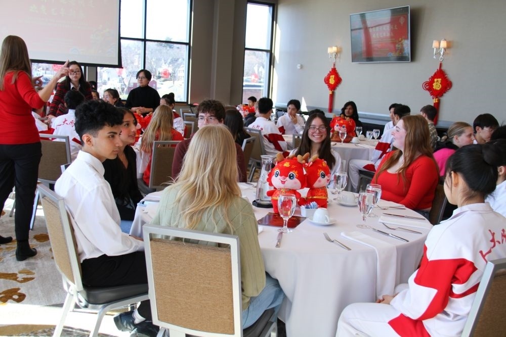 9日下午,在共慶春節(jié)的活動現(xiàn)場,馬斯卡廷高中校長瑞安·卡斯?fàn)柛嬖V記者,學(xué)校1月下旬已組織24名學(xué)生赴華交流,先后參觀訪問了北京、上海和河北省。他本人正在籌備4月帶領(lǐng)50名學(xué)生赴華交流。
